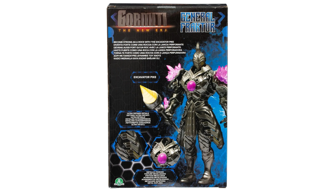 Răufăcătorul General Fraktur, tipul rau din Gormiti, prinde viață cu această figurină de acțiune înaltă, preluată fidel din serialul Tv și bogată în detalii.