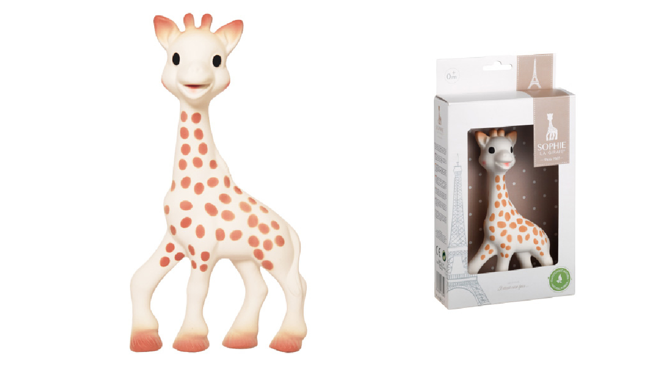 Sophie the Girafe este concepută pentru a încânta bebelușul cu fața ei dulce și petele contrastante, oferind în același timp un ajutor în perioada dentiției datorită construcției sale moi și ușoare din cauciuc natural.