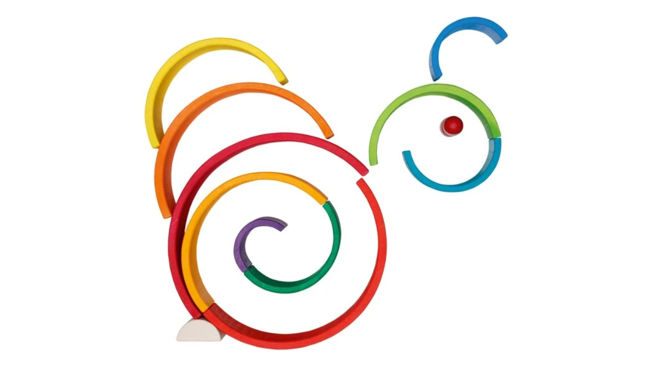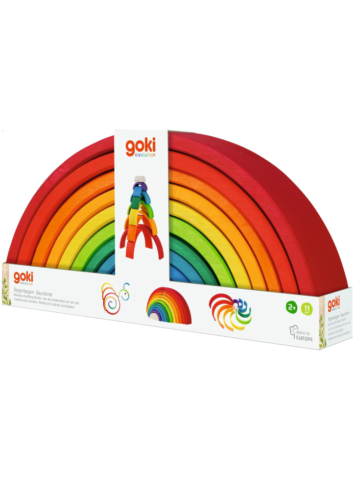Acest curcubeu vesel realizat din lemn de arțar le permite copiilor să stivuiască și să sorteze în timp ce învață în mod jucăuș dimensiunile, secvențele și culorile.