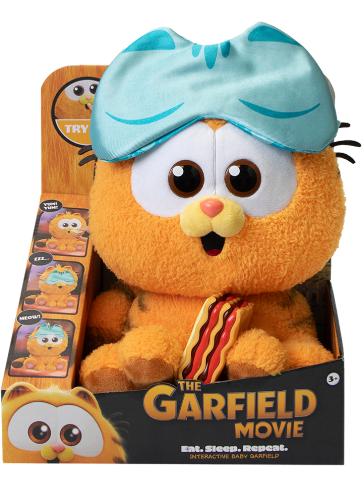 Acum îl poți hrăni pe bebelușul Garfield pentru a auzi sunetele de mâncare sau poți pune parasolarul peste ochii lui și va începe să sforăie.