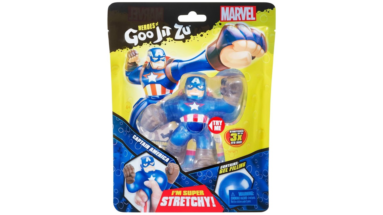 Acest erou Marvel emblematic, cunoscut pentru curajul său și scutul inconfundabil, primește un upgrade unic cu textura elastică Goo Jit Zu.