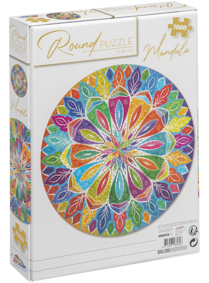 Diferit de puzzle-ul dreptunghiular tradițional, puzzle-ul Mandala rotund de la Grafix.