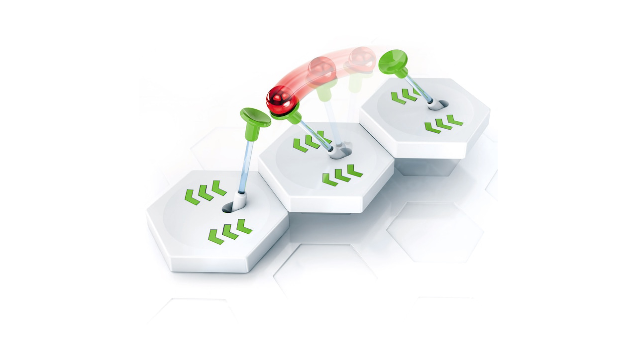Gravitrax Transfer is used with the Gravitrax Starter Set basic set and is perfect to add variety and complexity to the interactive game.