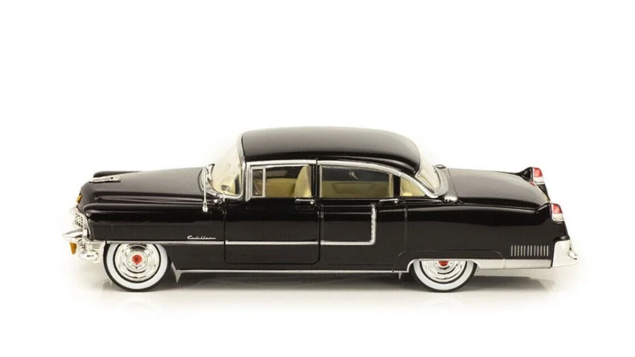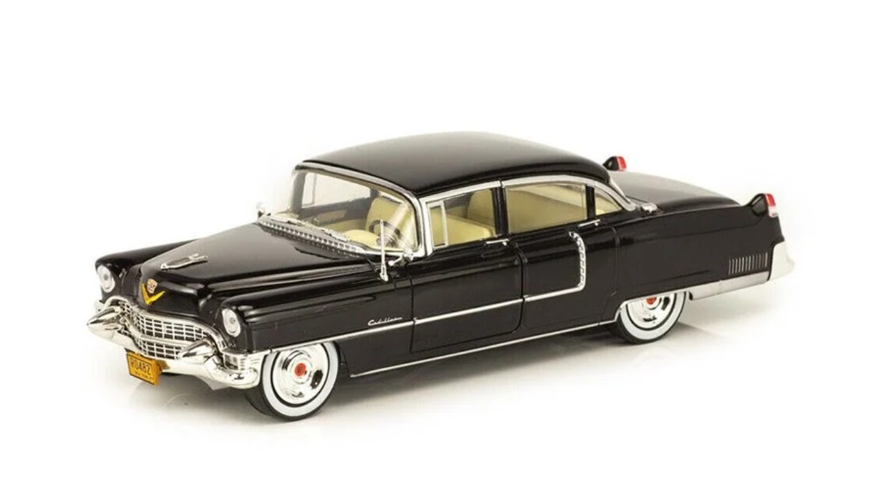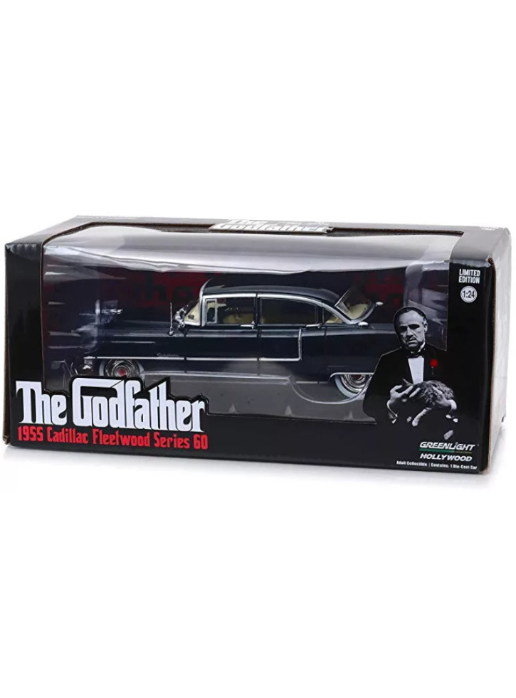 Model nou de mașină diecast la scara 1/24 de 1955 Cadillac Fleetwood Series 60 Black „The Godfather” (1972).