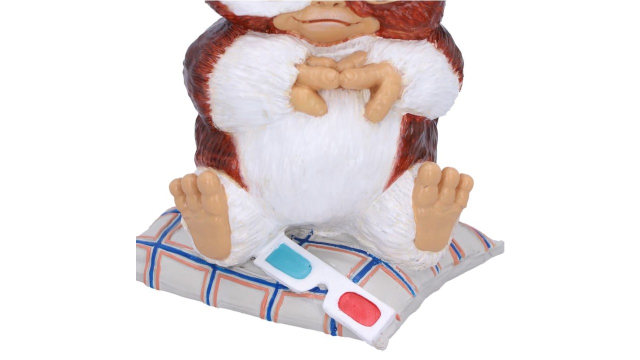 This figurine captures Gizmo watching a movie while sitting on a cushion with 3D glasses.