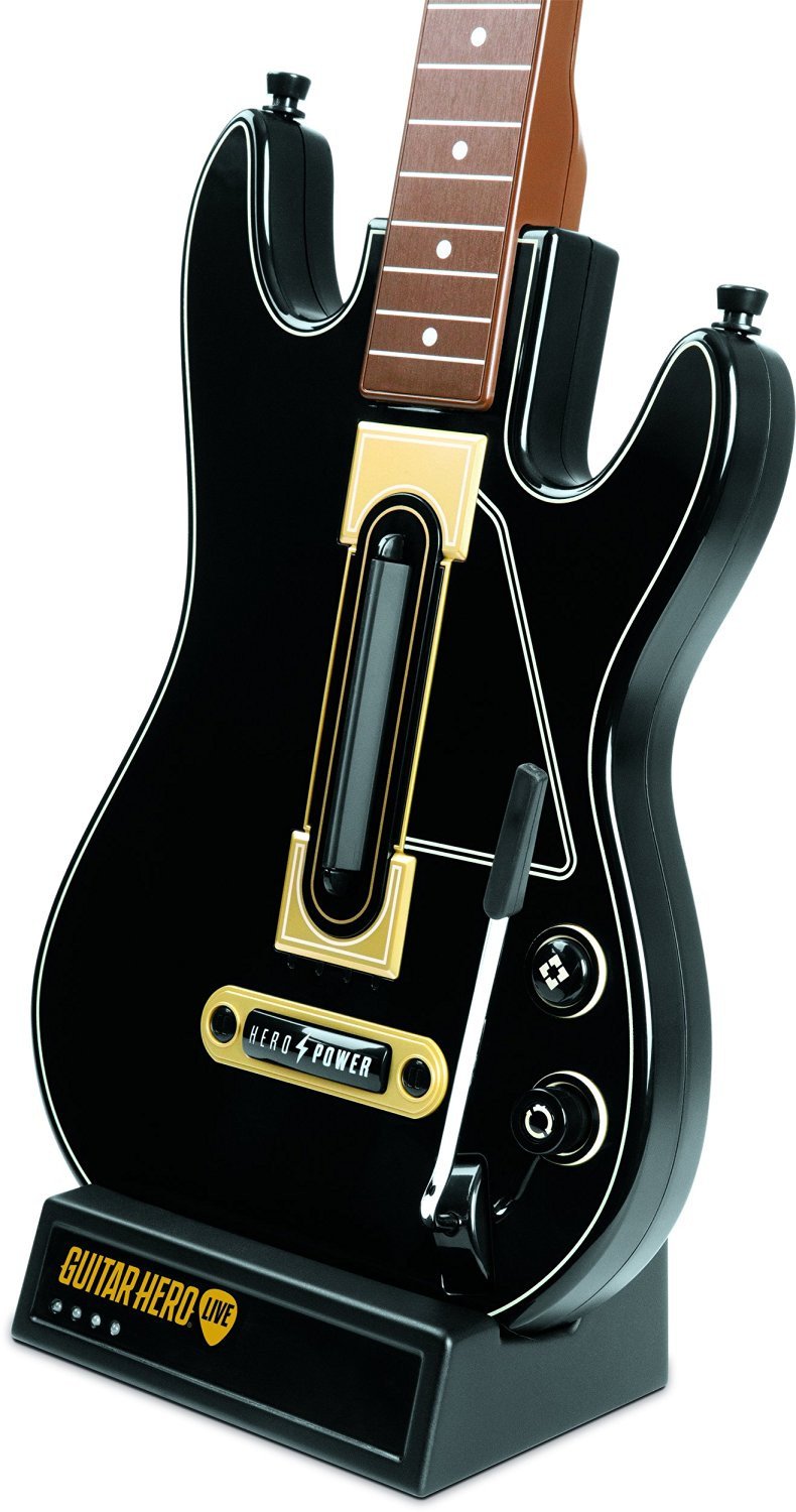 Guitar Hero Live + Chitara pentru Playstation 4 Guitar Hero Live este dezvoltat de catre studioul FreeStyleGames, cei care si-au adus contributia si pentru DJ Hero si DJ Hero 2.Guitar Hero Live vine cu doua noi modalitati de te juca, una first-person in cadrul careia te afli direct pe scena si interpretezi melodia ca un adevarat star, precum si GHTV, o colectie imensa de clipuri livrate non-stop, 24 e ore din 24, sub forma unor posturi TV care permit jucatorilor din toata lumea sa-si masoare puterile unul impotriva celuilalt. Guitar Hero Live vine la pachet cu un nou controller cu doua randuri a cate trei butoane, ceea ce permite o experienta ideala de joc atat pentru cei care abia se familiarizeaza cu acest concept, cat si pentru veteranii francizei. Caracteristici principale: - Mod first-person care permite jucatorului sa traiasca experienta unica a unui star rock ce se afla pe o scena, de la cele de club pana la cele in aer liber de la marile festivaluri. - Prima retea de canale TV, GHTV, care permite jucatorilor sa-si aleaga genul de muzica preferat si sa joace Guitar Hero Live impreuna cu prietenii lor, local sau online, intr-o competitie pentru a obtine cel mai bun scor. - Un nou controller pentru toti cei care vor sa joace Guitar Hero Live. Cei care abia acum se familiarizeaza cu noul concept pot folosi numai cele trei butoane de pe randul de jos, in timp ce veteranii pot incerca combinatii de butoane, de la cele simple pana la unele complexe. - O lista diversa de melodii din partea unor artisti si formatii precum The Black Keys, Fall Out Boy, My Chemical Romance, Gary Clark, Jr., Green Day, Ed Sheeran, The War on Drugs, The Killers, Skrillex, The Rolling Stones, The Lumineers, Pierce the Veil si Blitz Kids plus multi altii ce vor fi anuntati in lunile urmatoare. - O versiune pentru mobile ce ofera o experienta similara cu cea de pe console, fanii avand acum posibilitatea de a juca Guitar Hero Live oricand si oricum. Data Lansare: 20.10.2015.