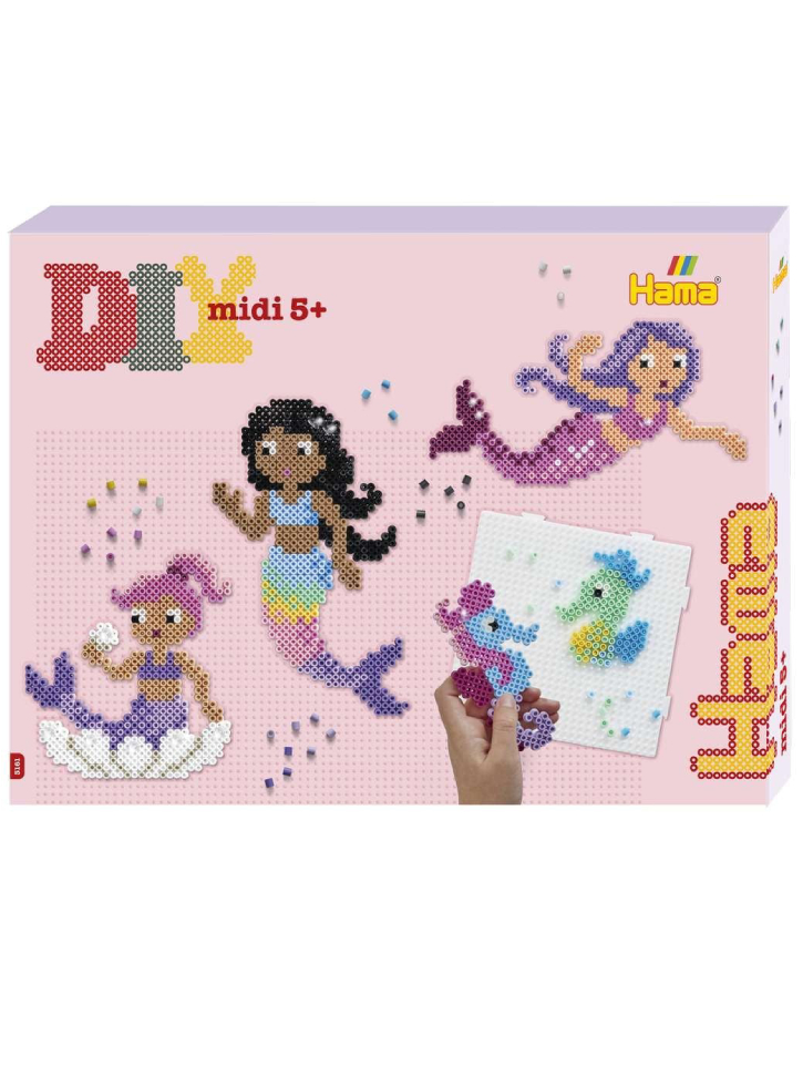 Dream, create, discover, enter the magic world of sirens with Hama Midi Gift Box Mermaids.