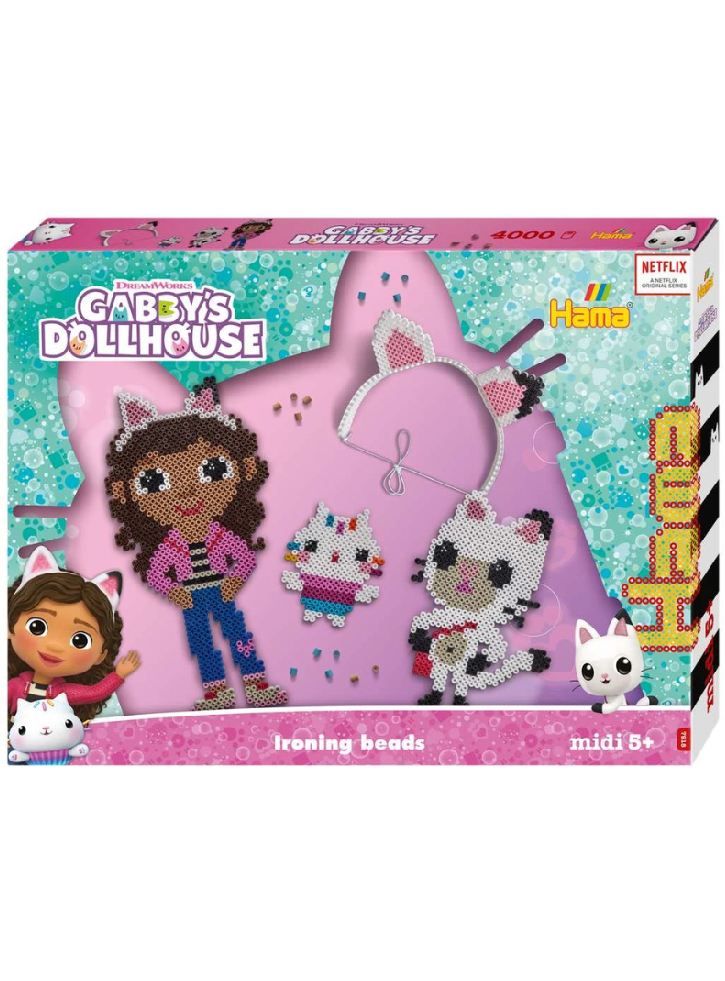 Pornește într-o aventură cu această cutie Hama midi Gabby's Dollhouse, inspirată din îndrăgita serie Gabby's Dollhouse.