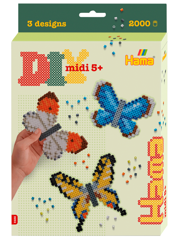 Hama Midi hanging box Butterflies este un set de artizanat creativ destinat atât copiilor, cât și adulților, care oferă posibilitatea de a crea modele colorate și detaliate de fluturi folosind perlele Hama Midi.