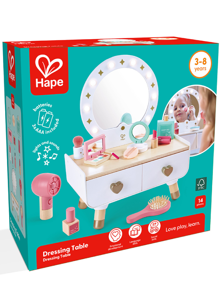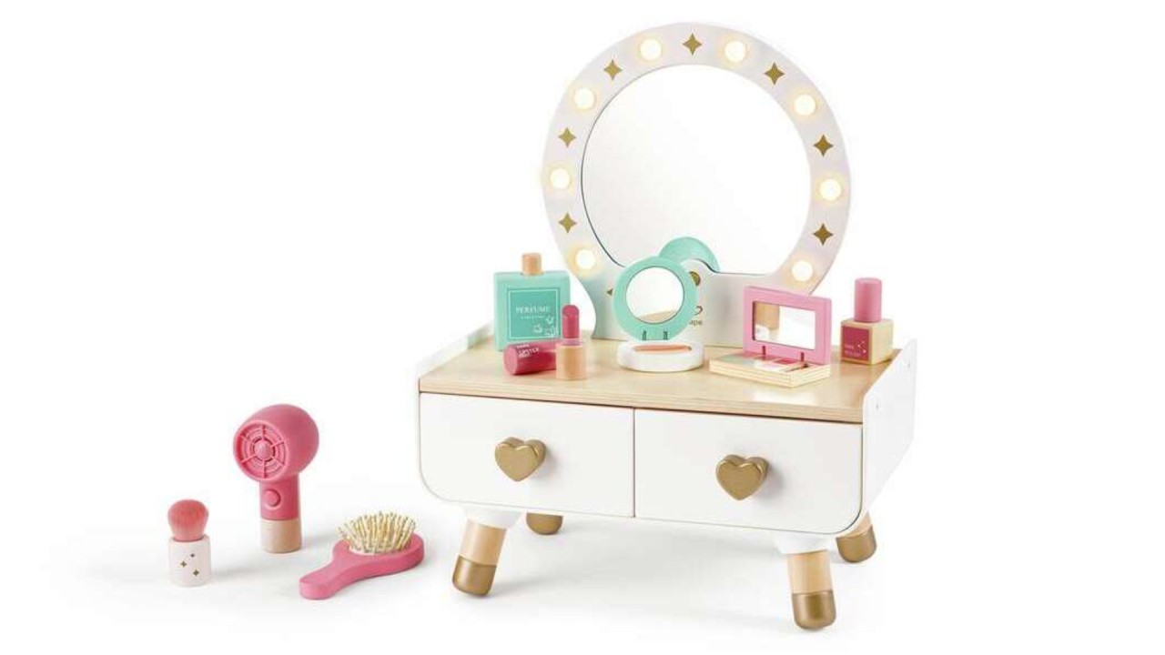 Dezlănțuie creativitatea și joaca imaginativă cu această măsuță de toaletă luminoasă si elegantă.