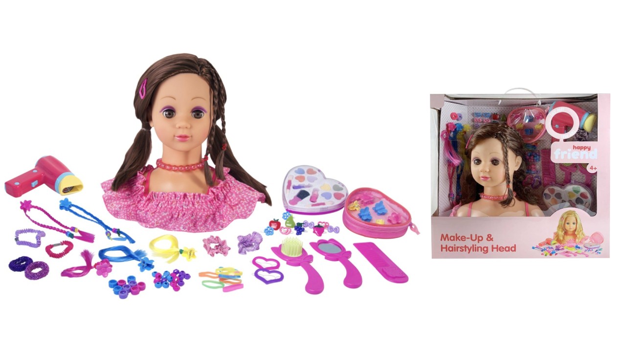 Capul de machiaj vine cu o mulțime de accesorii atât pentru păr, cât și pentru fața păpușii.