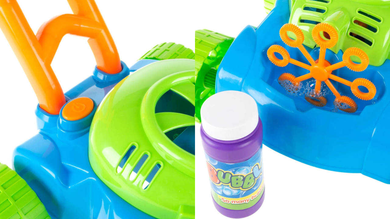 Jucăria de mai sus este o mașină de tuns iarba, cu niște bule de săpun extrem de amuzante și festive care fac totul mult mai distractiv și mai festiv!