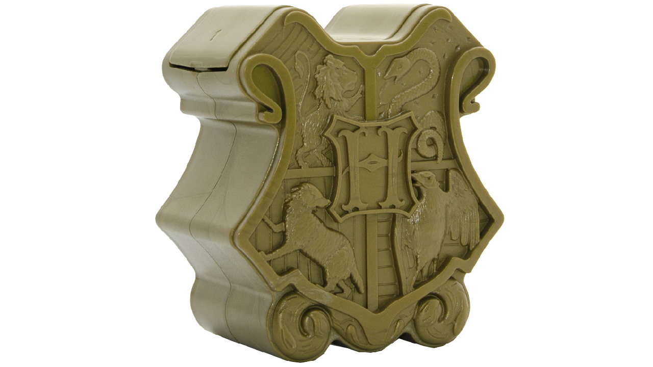 Un sortiment de zece figurine de colecție din lumea magică a lui Harry Potter, în incitante cutii orb de culoare aurie, care nu dezvăluie conținutul.