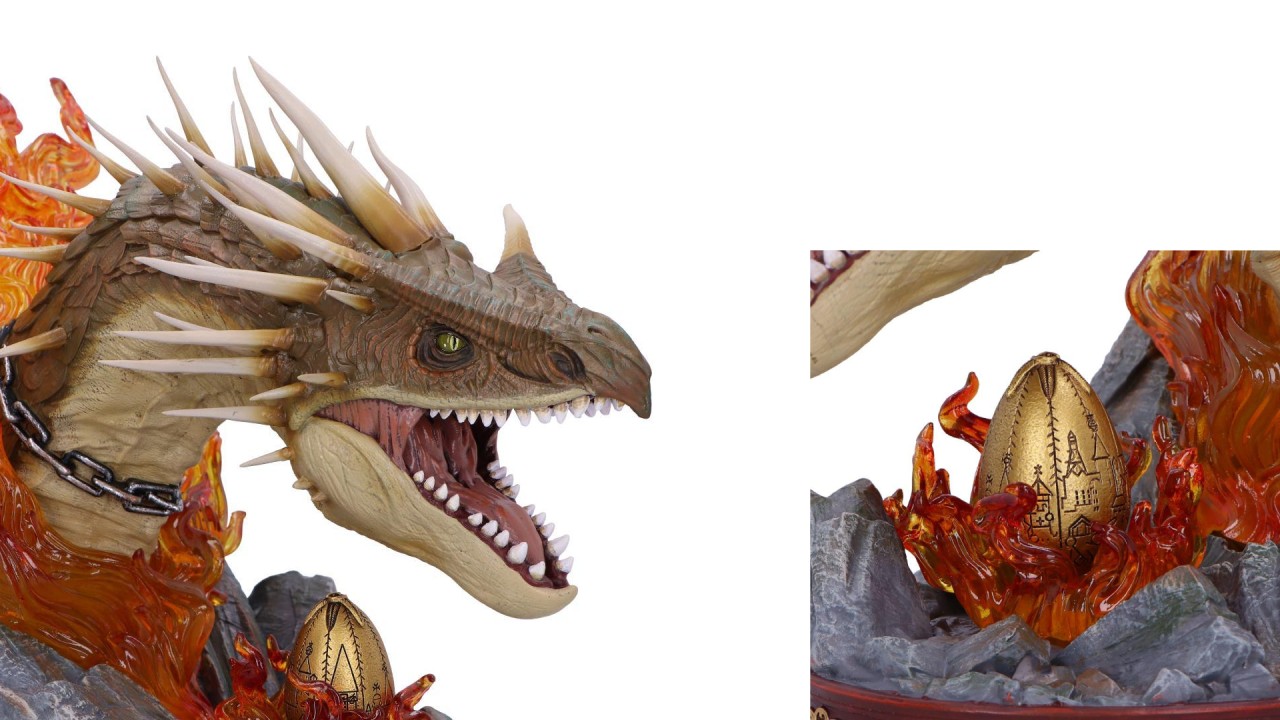 The rocky base adds the texture and weight to the design, while the golden egg hidden under the careful gaze of the dragon connects the piece directly to the iconic scene of Harry Potter and the Fire Pocal.