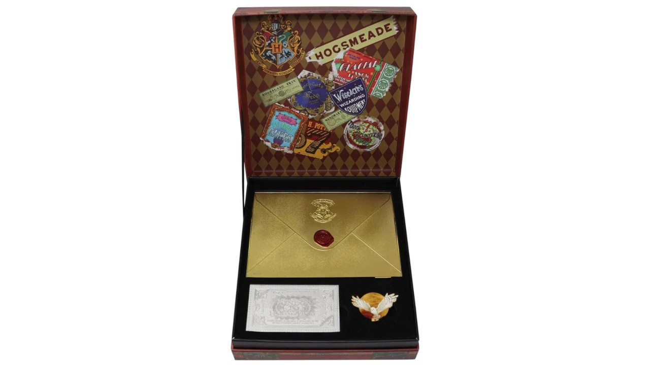 De asemenea, include o carte de vizită pentru rechizite școlare și o insignă de pin Hedwig din email placat cu aur de 24 carate.