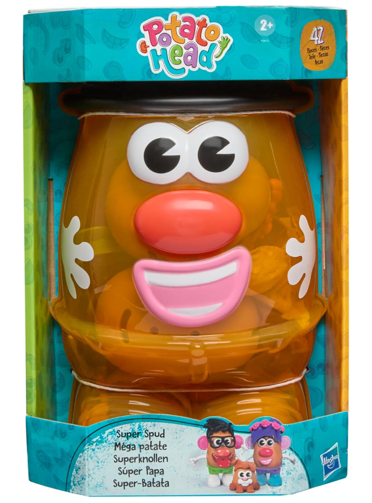 Acest set de jucării cu cartofi vine cu un recipient de depozitare în formă de cartof, 3 corpuri de cartofi și 38 de piese accesorii pentru capul de cartof, inclusiv urechi de animale, păr violet, coroană de flori și multe altele.