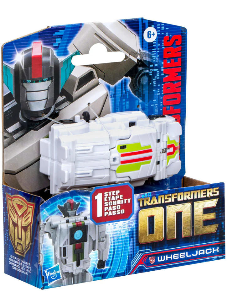 This Hasbro Transformers One 1-Step Cog Changer figure represents Wheeljack, the Autobot engineer and inventor known for his creativity and ingenuity.