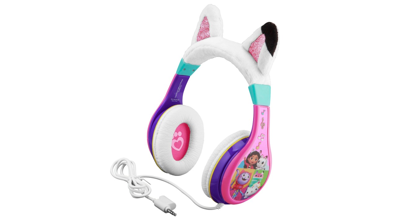 Căștile prezintă urechi de pisică drăguțe și o grafică colorată inspirată de popularul serial Gabby și Pandy Paws.