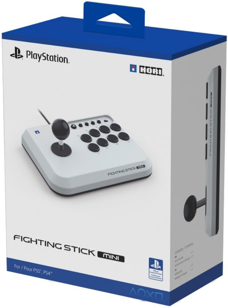 HORI Fighting Stick Mini pentru PlayStation 5 si PlayStation 4 dispune de un layout complet cu 8 butoane si un joystick activat de microcomutatoare adecvate.