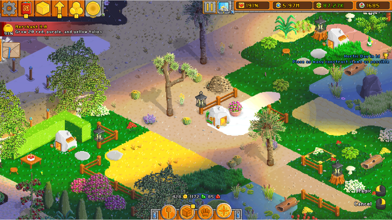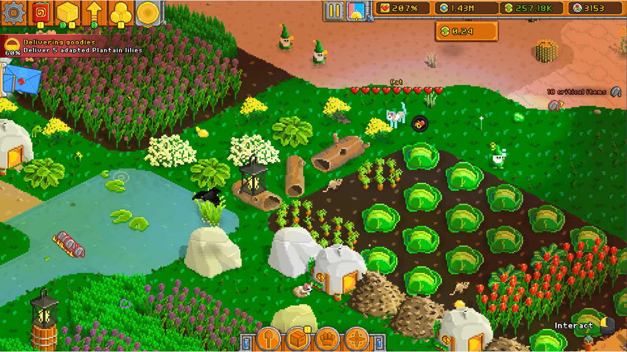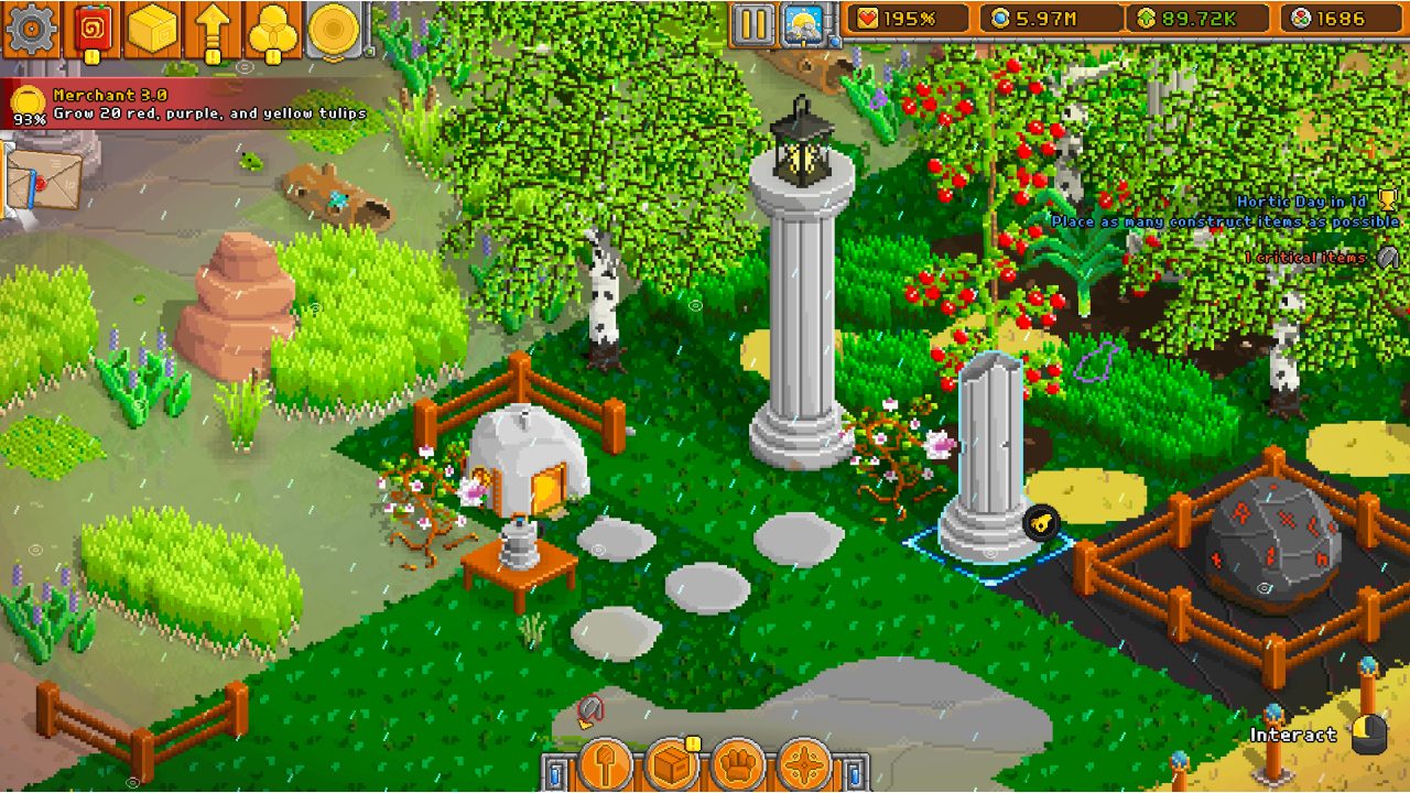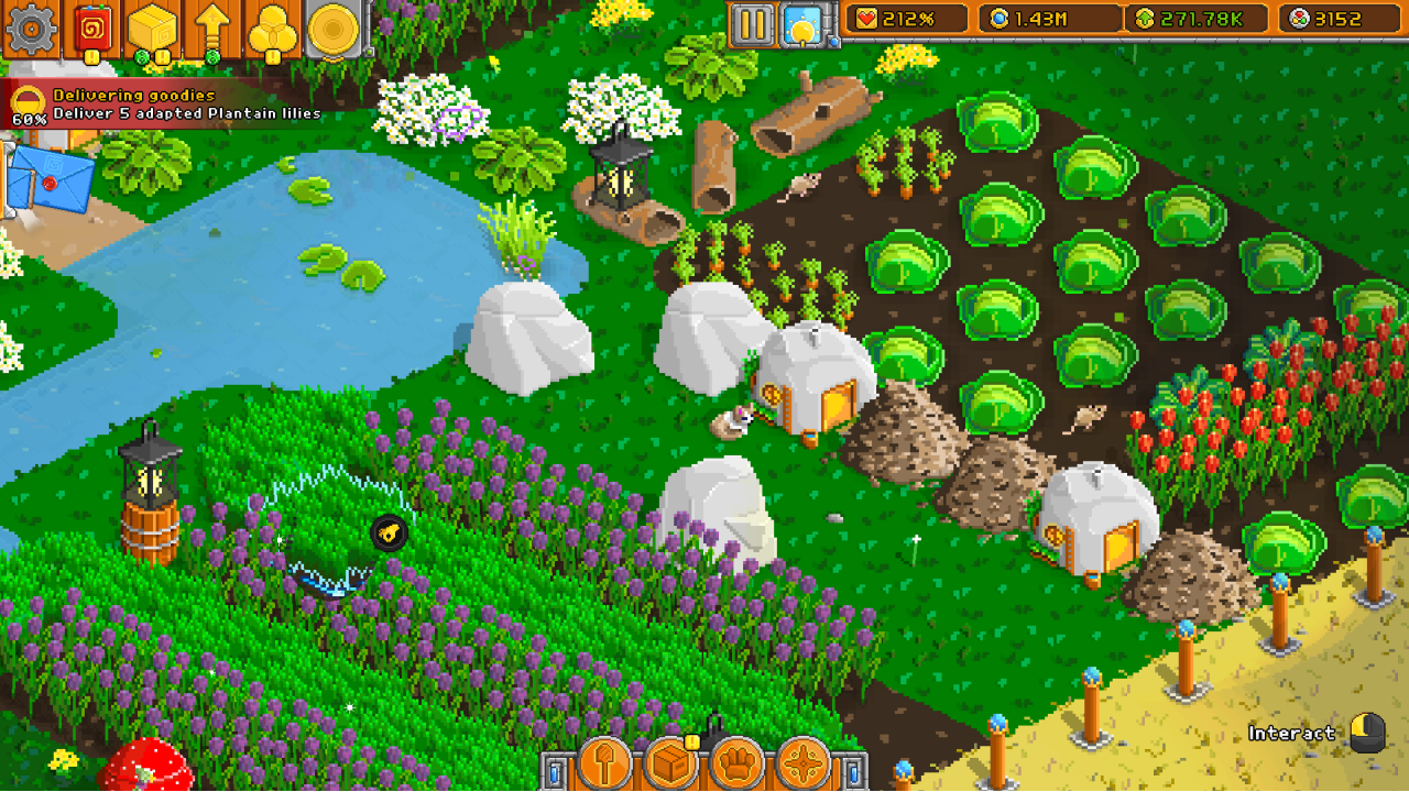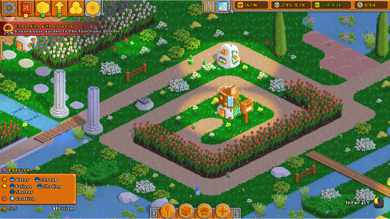 Build and expand the garden of your dreams with hundreds of unlockable surface types and items. You set the pace and what to do next, whether it be developing a new vegetable area, progressing a lucrative story arch, or just sitting back and admiring your creation.