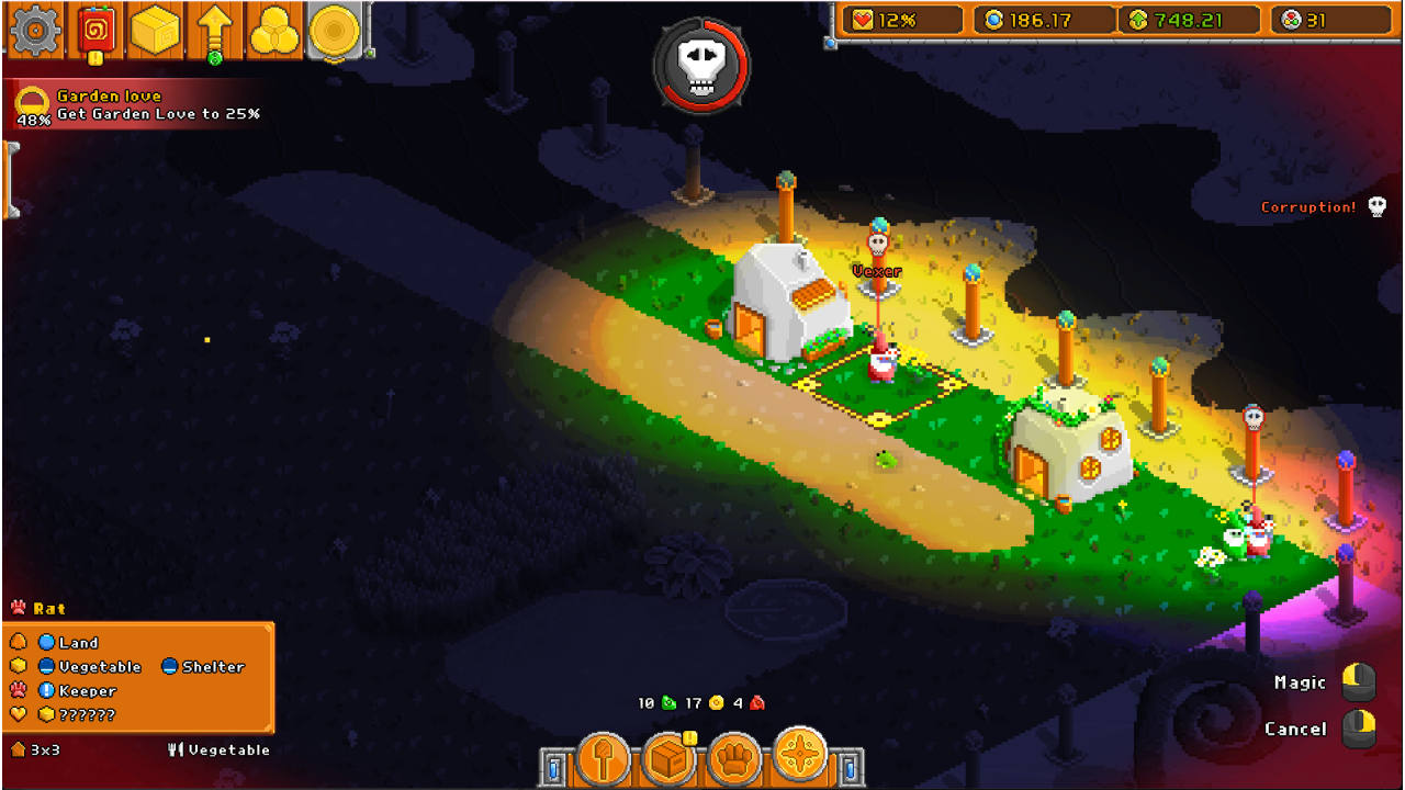 Enter a magical world where you build up and expand a lush garden at your own pace. In your journey, you attract adorable animals to inhabit every corner; uncover helpful upgrades; and assist quirky characters for rewards and story development—all while juggling decay and fending off corruption sent by your nemesis!