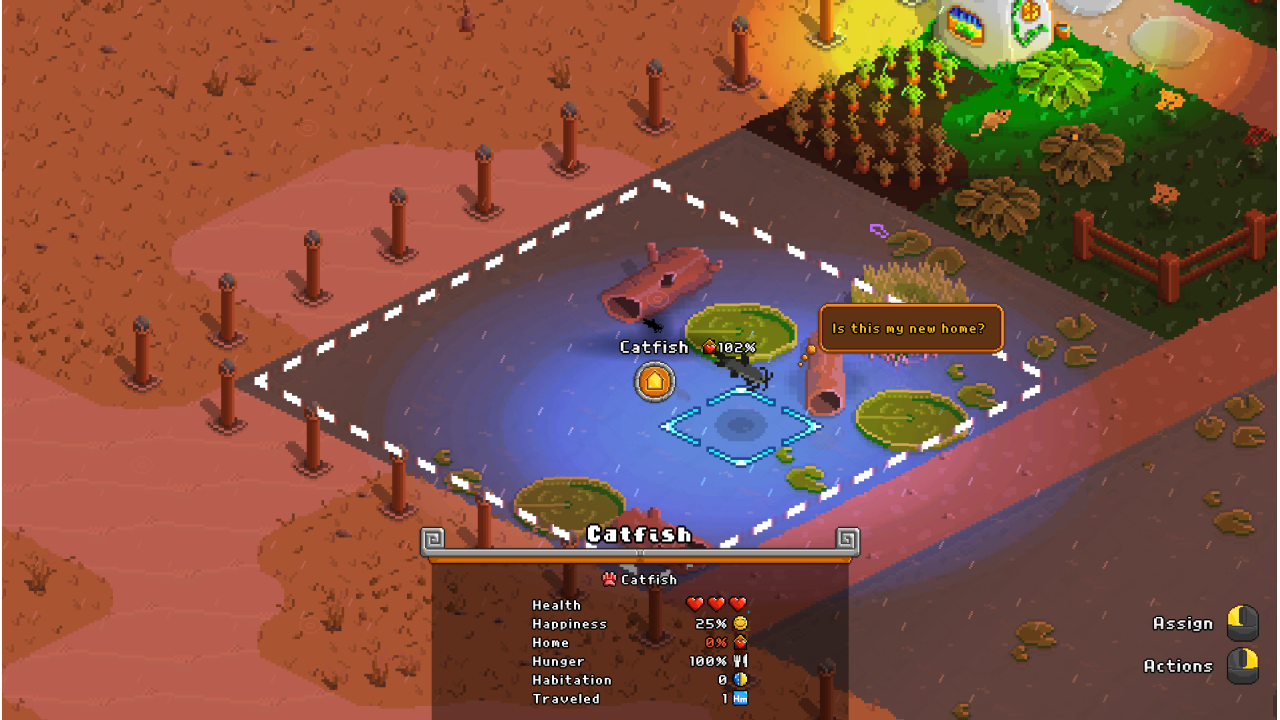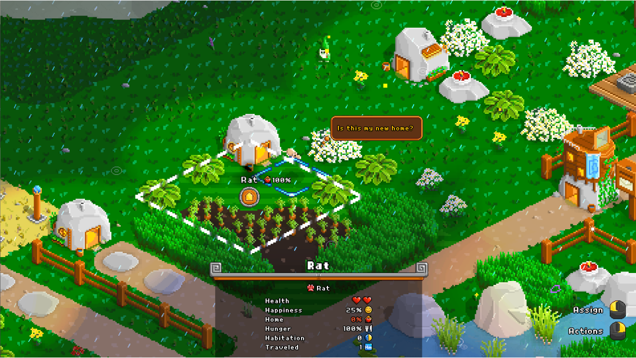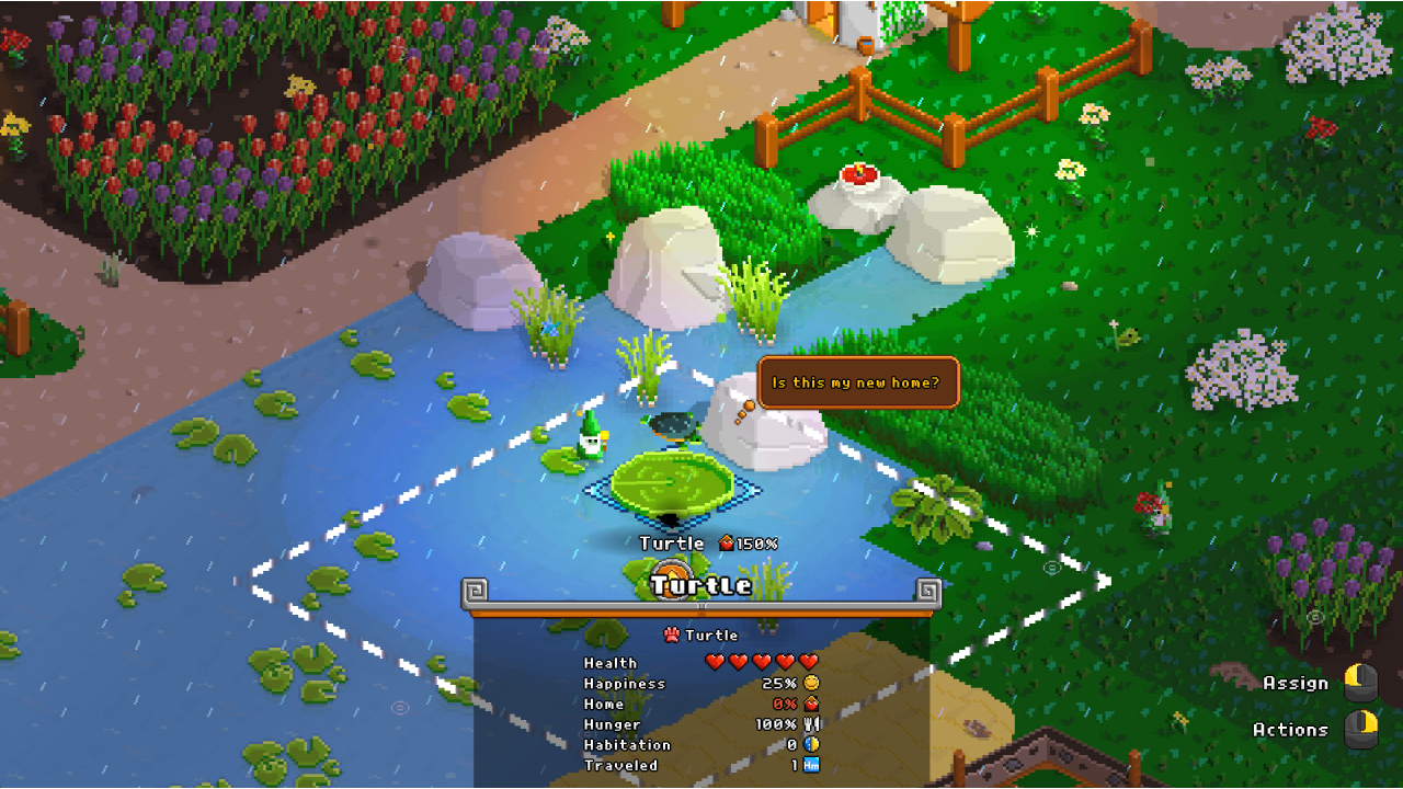 Immerse yourself in your personal garden diorama, complete with a day-night cycle and weather effects. But while a rainy and lantern-lit evening may be cozy, it is not just for show! You will find that darkness attracts unsavory characters, some animals prefer specific weather conditions, and lightning strikes loom under stormy skies.