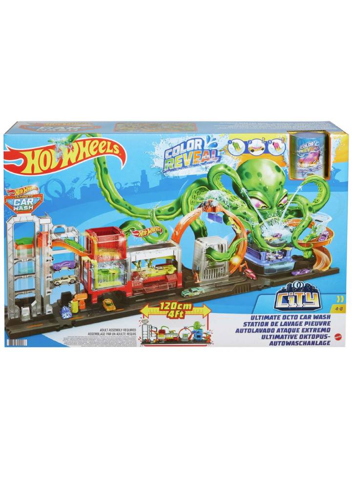 Spălătoria auto Hot Wheels City Ultimate Octo este plină de caracteristici impresionante și vine cu o mașină care oferă mai multe surprize pentru a-i face pe copii să își dorească să o viziteze din nou și din nou!