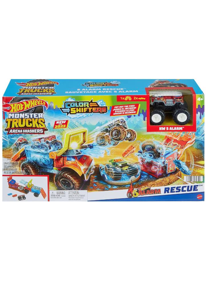 Setul de joacă Hot Wheels Monster Trucks Arenabeukers Color Shifters 5-Alarm Rescue este alegerea perfectă pentru o distracție unică și captivantă! Experimentați senzații tari și schimbări uimitoare de culoare!