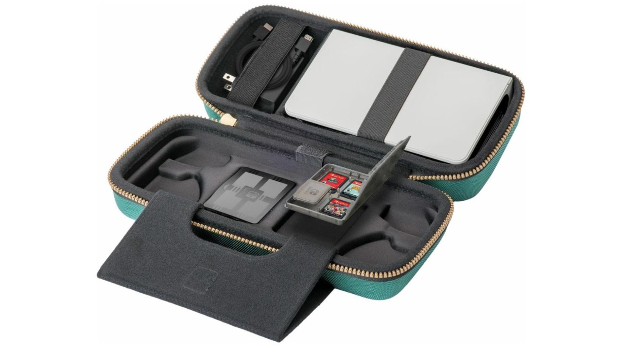 - Husă de depozitare cu spațiu pentru 4 cărți de joc, se potrivește perfect sub consola Nintendo Switch.