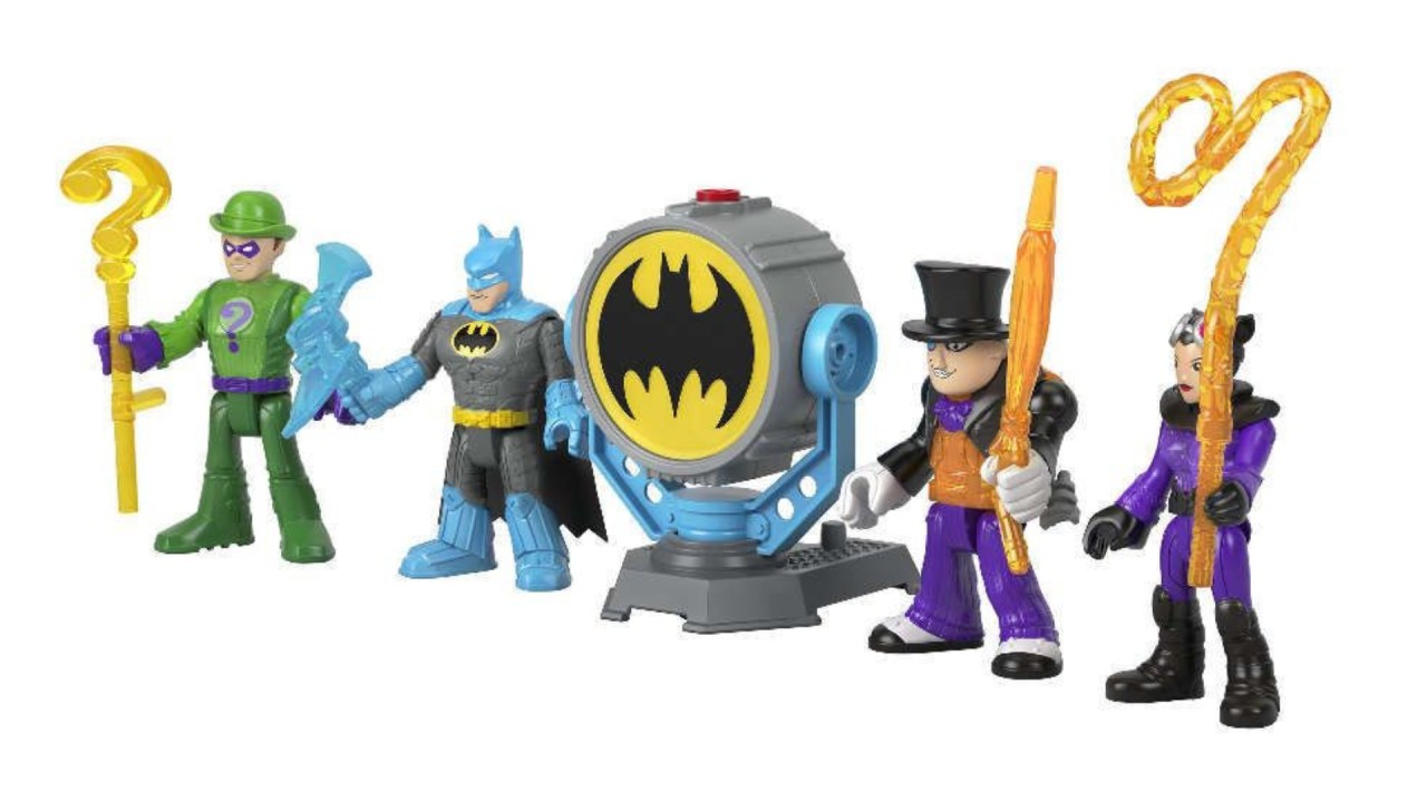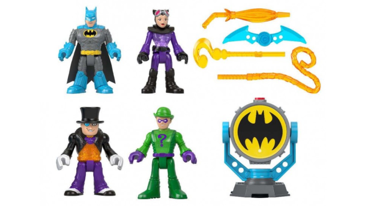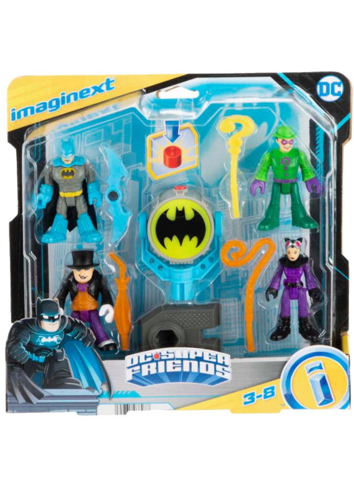 Figurinele DC Super Friends preferate sunt aici. Pachetul ii contine pe Batman, The Riddler, Catwoman și The Penguin.