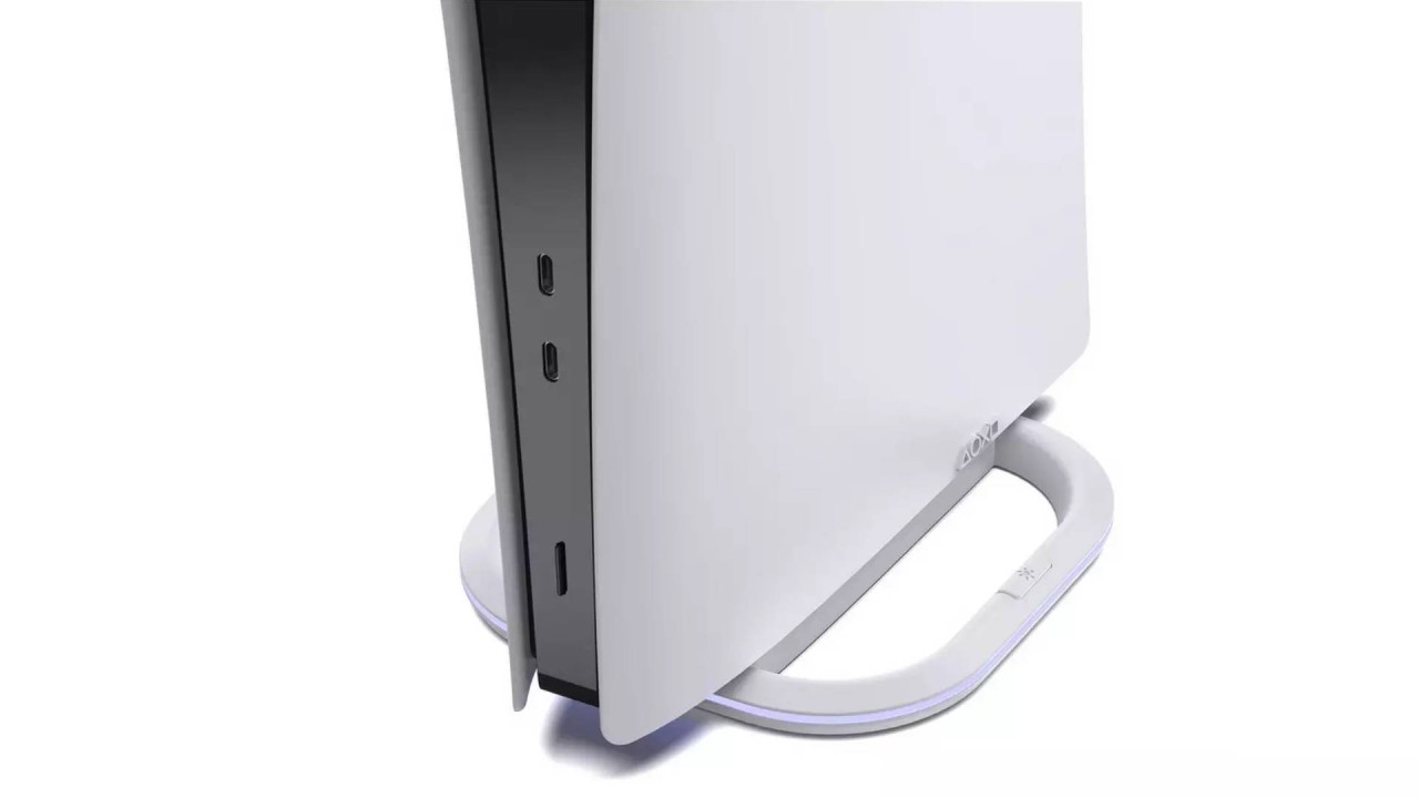 The compact LED stand provides increased stability and ambient lighting, enhancing the PS5 with its sleek and complementary design.
