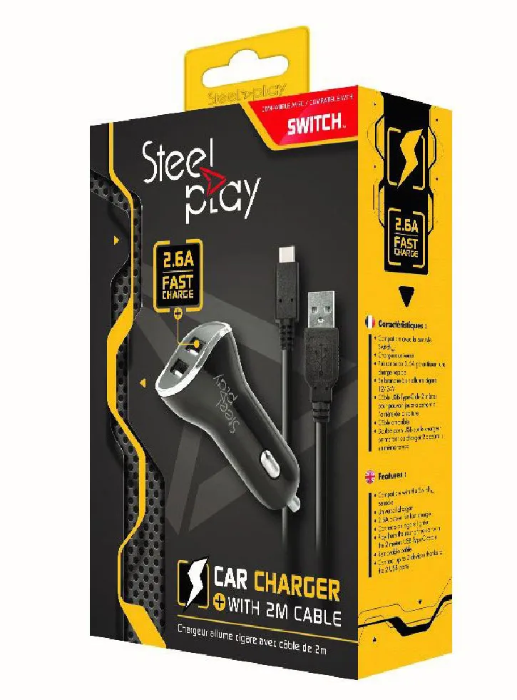 Compatibil cu consola portabilă Nintendo Switch, încărcătorul auto Steelplay vă permite să încărcați consola în timp ce sunteți în mișcare cu mașina.