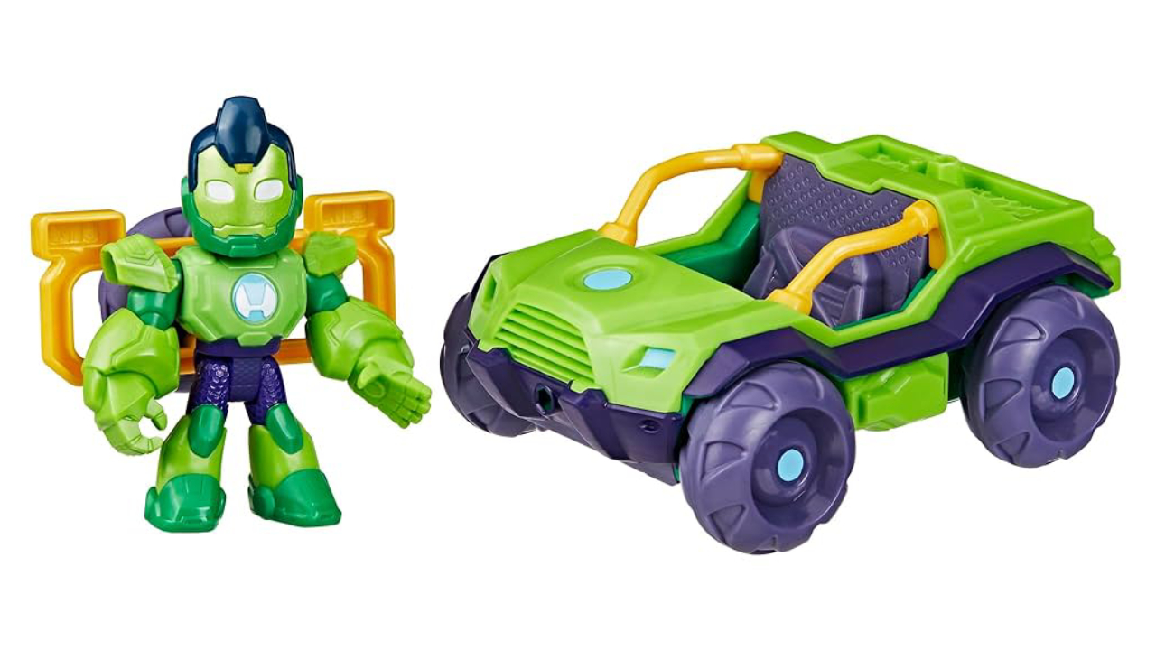 This vehicle toy comes with an Iron Hulk positionable that fits inside.