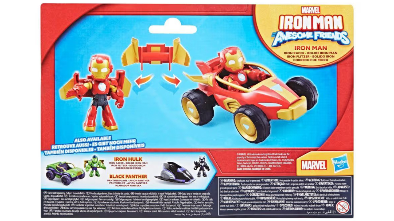 Inspirat de seria Iron Man și Prietenii Săi Minunați de la Disney Jr, incluse 2 accesorii: spoiler si aripi detasabile.