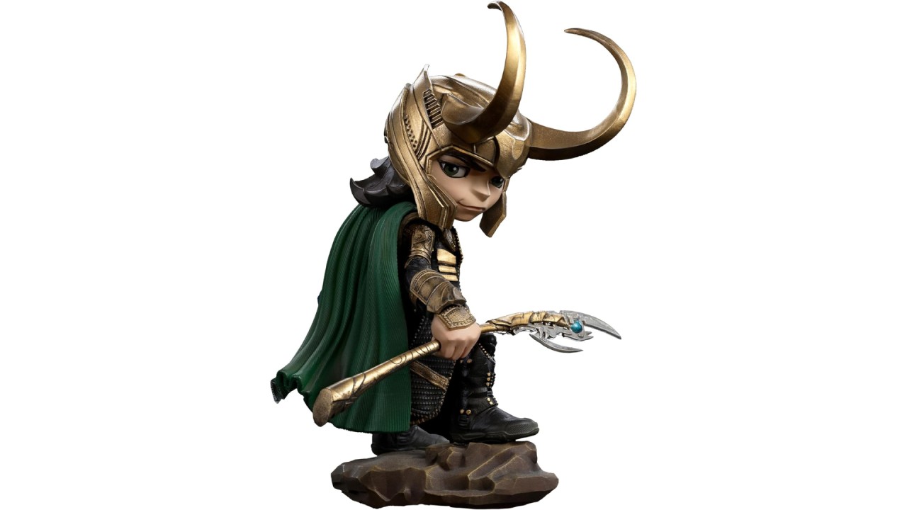 Iron Studios MiniCo Marvel Avengers Infinity Saga Loki 20 cm is a collectible figure from the MiniCo series, made by Iron Studios, representing the character Loki from the Marvel universe, especially from the Avengers and Infinity Saga movies.