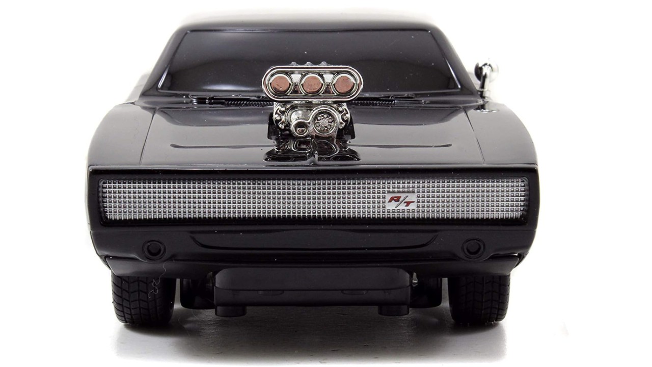 Această mașină teleghidată reproduce fidel fiecare detaliu al legendarului Dodge Charger din Fast & Furious, de la caroseria musculoasă la culoarea neagră emblematică.