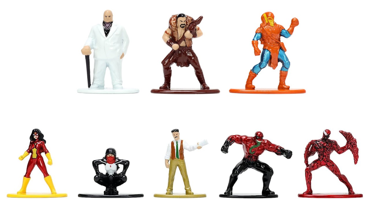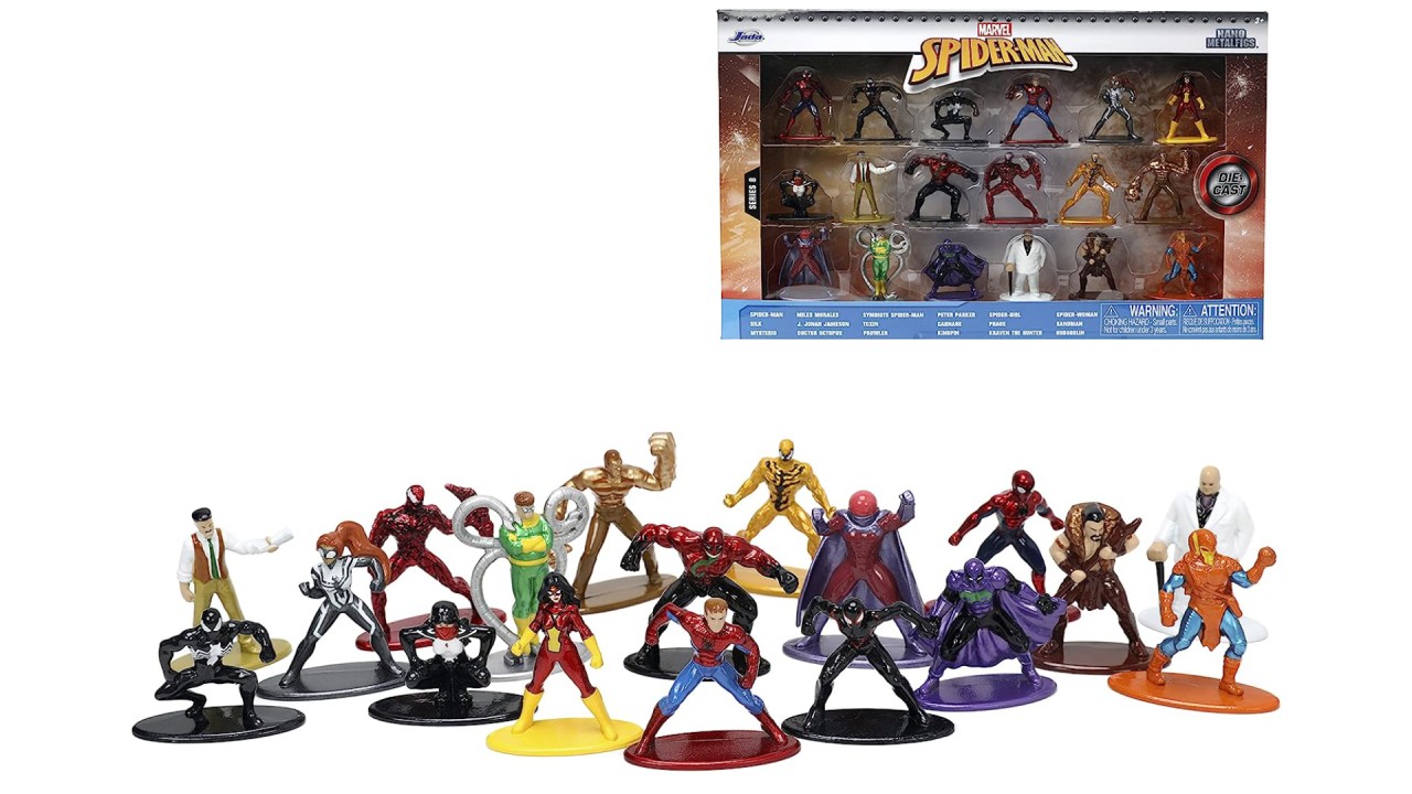 Pachetul contine figurinele eroilor si raufacatorilor tai favoriti: Spider-Man Mark IV, Electro, Vulture, Iron Spider, Mysterio, Superior Venom, Spider-Gwen, Sandman, Carnage, Spider-Man 2099, Rhino, Scream, Spider-Girl, Green Goblin, Riot, Reverse Spider-Man, Lizard, Agent Venom.