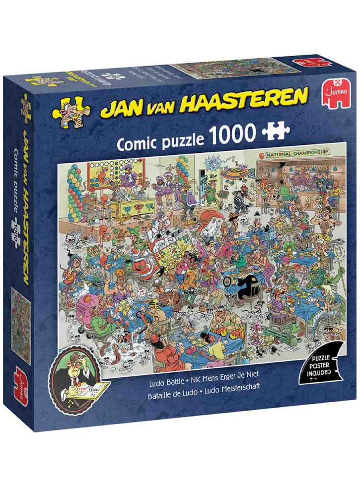 Creat de celebrul artist Jan Van Haasteren, acest puzzle redă într-un stil caricatural o bătălie nebună inspirată din clasicul joc de Ludo.