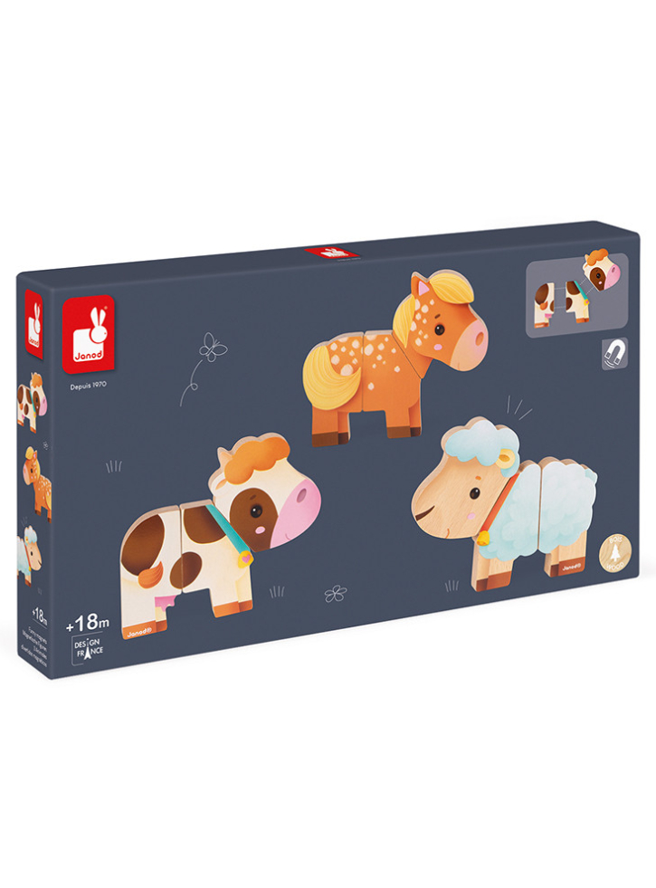 Janod Farm Funny Magnets (LKJ8058) este un set de jucărie educativă din gama Janod, care oferă copiilor o modalitate amuzantă și creativă de a învăța despre animalele de la fermă.