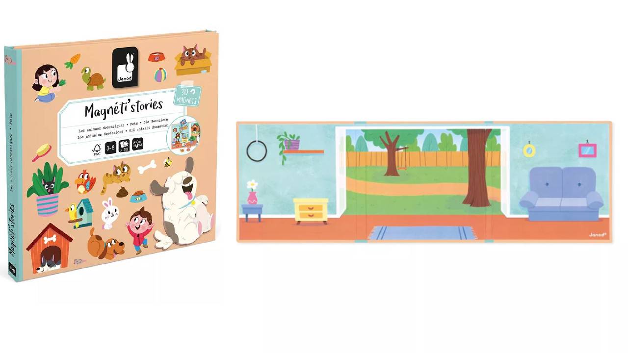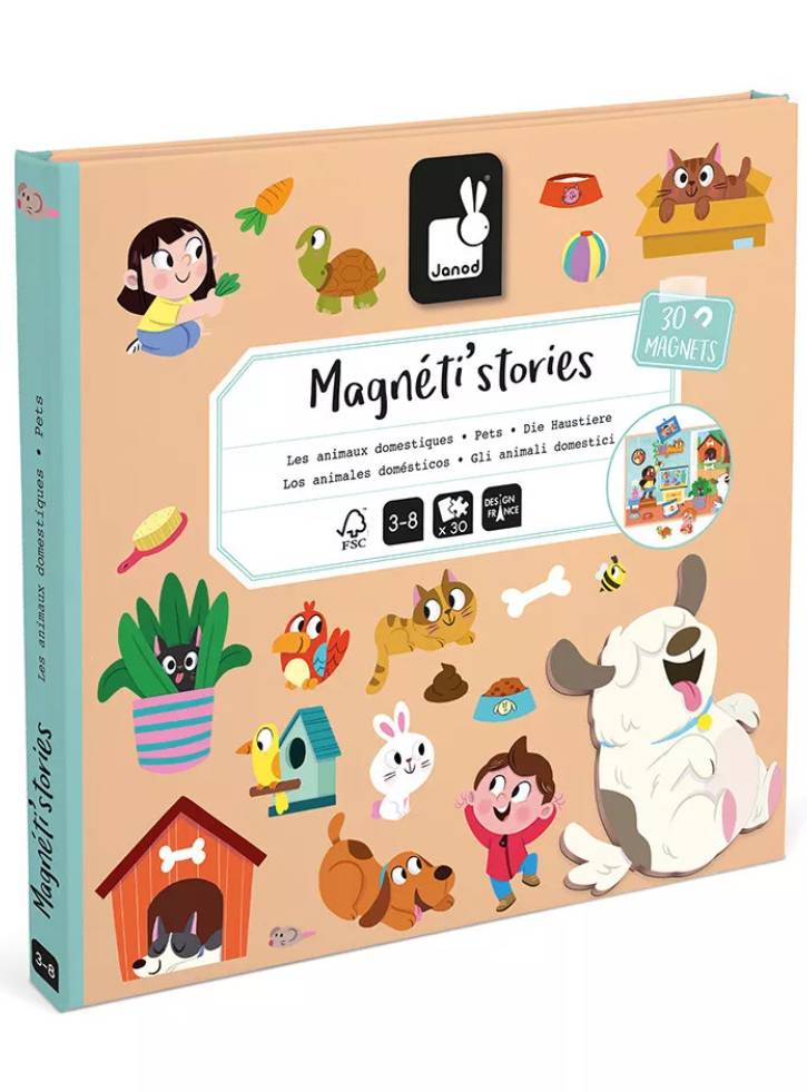 Setul include 30 de magneți colorați cu teme distractive precum animale de companie, petreceri cu animale și unicorni, permițând copiilor să creeze și să împărtășească propriile povești pline de imaginație.