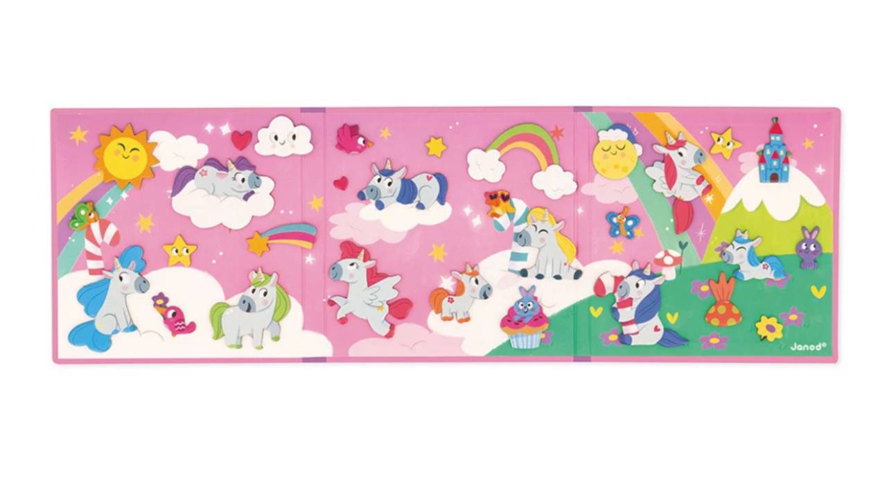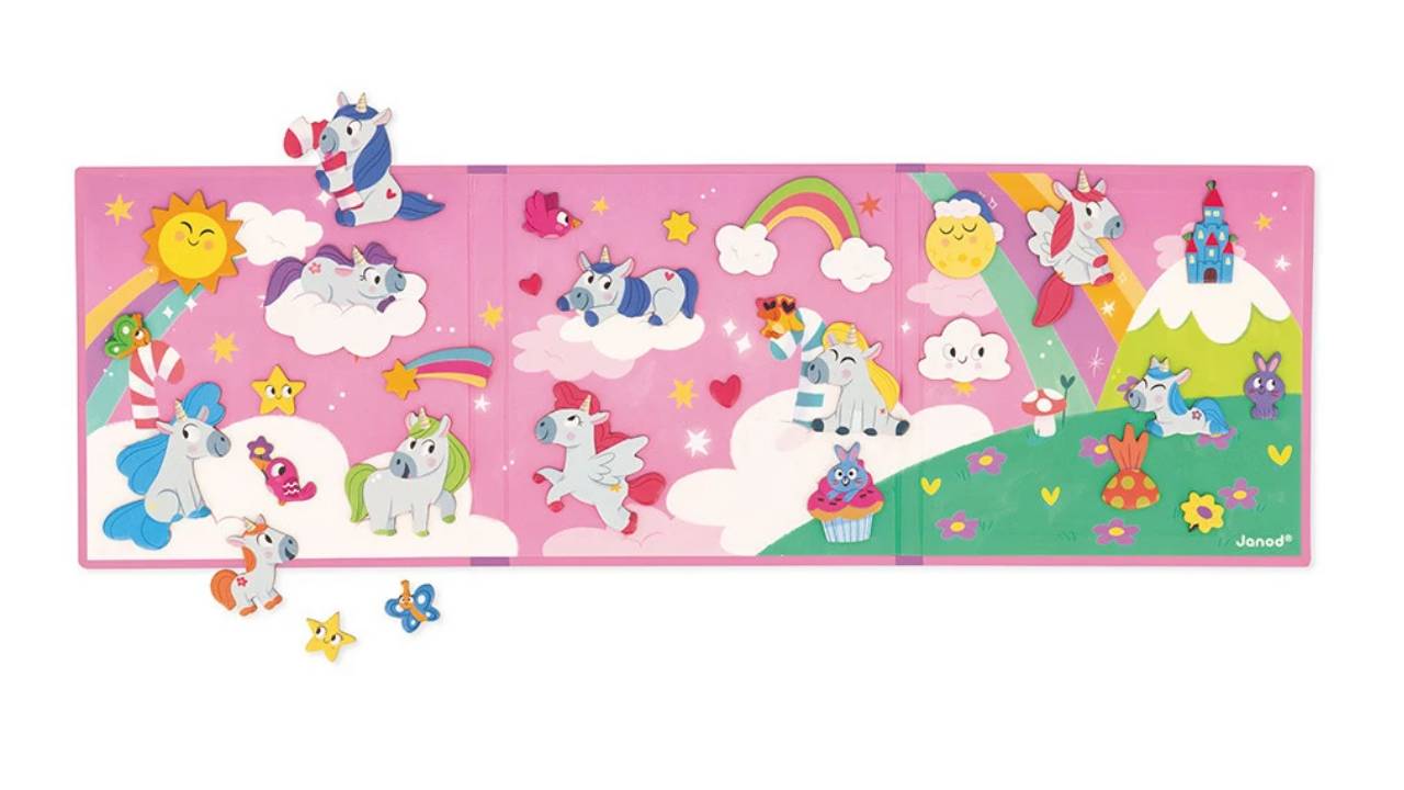 Acest joc magnetic cu tematică unicorn face parte din marea colecție Magnéti'stories, care promovează eficient imaginația și visatul cu ochii deschiși.