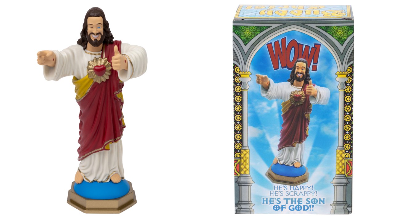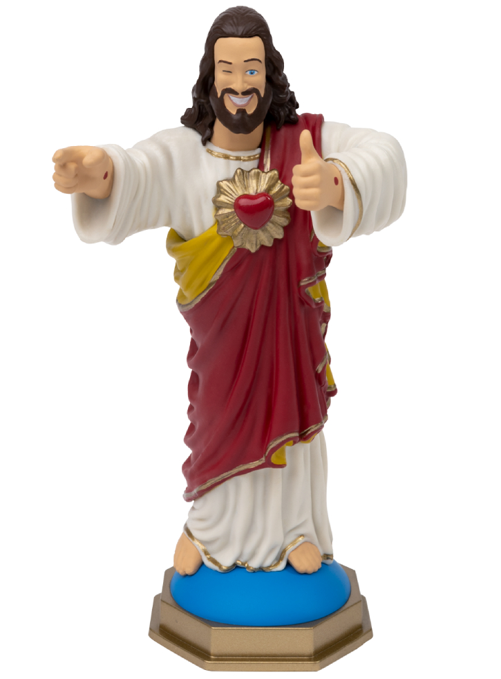 Orice fan bun al lui View Askew urmează cartea nescrisă a drumului, dar tu poți urma și cartea celei mai fericite și mai răzlețe versiuni a lui Mesia cu Buddy Christ Dashboard Figurine!