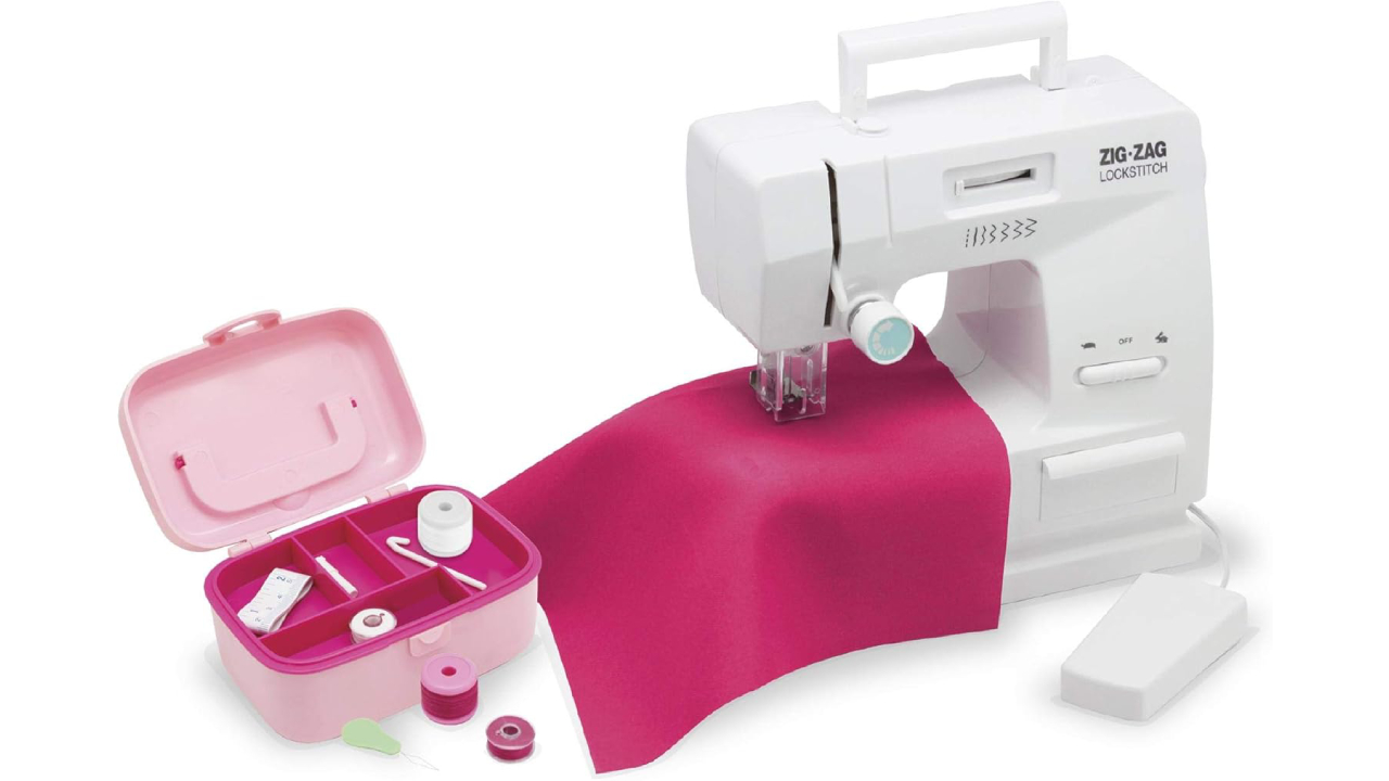 Mașina de cusut are o pedală și mai multe funcții ca o mașină de cusut adevărată.