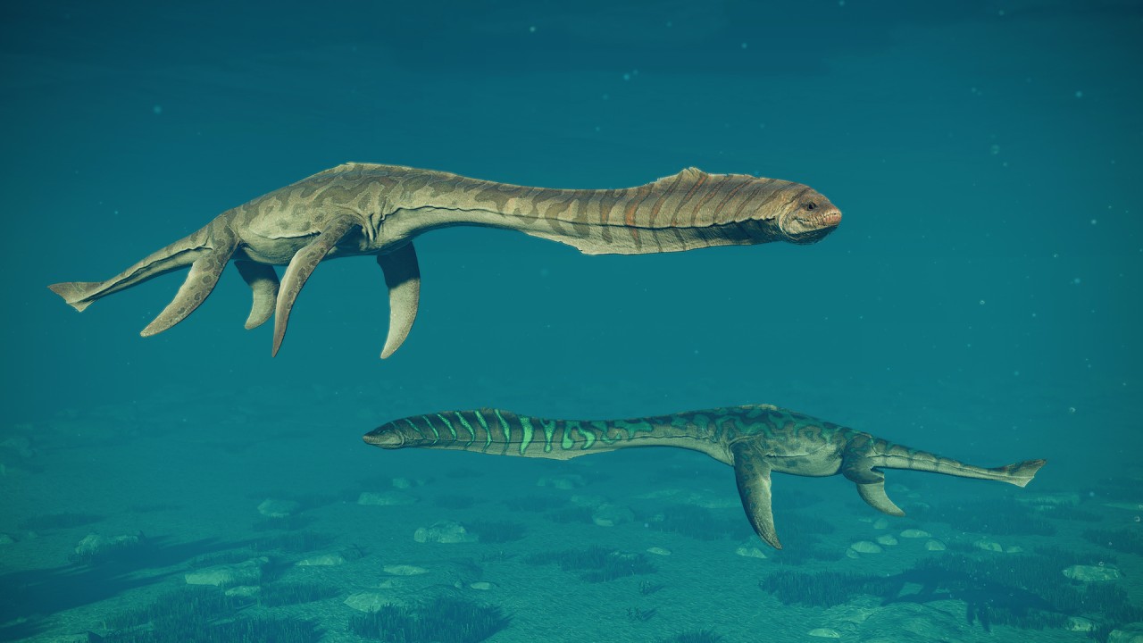 Styxosaurus, a marine species that ruled the Late Cretaceous waves. Its streamlined shape combined with sizable fins produces deadly undersea swiftness, making Styxosaurus one of the most efficient predators of its time. Try modifying its genome with diverse bioluminescent pattern colours.