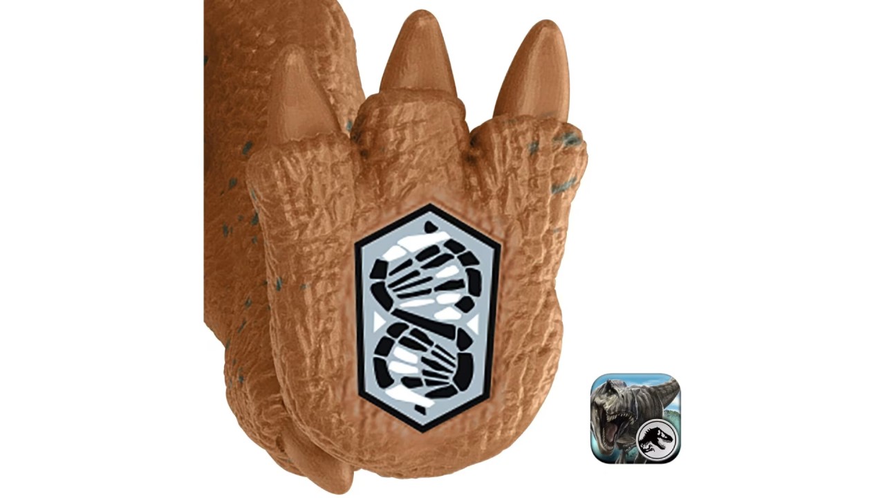 Scans the tracking code on the dinosaur's foot in the free Jurassic World Play app with a compatible device (Android or iOS, is not included).