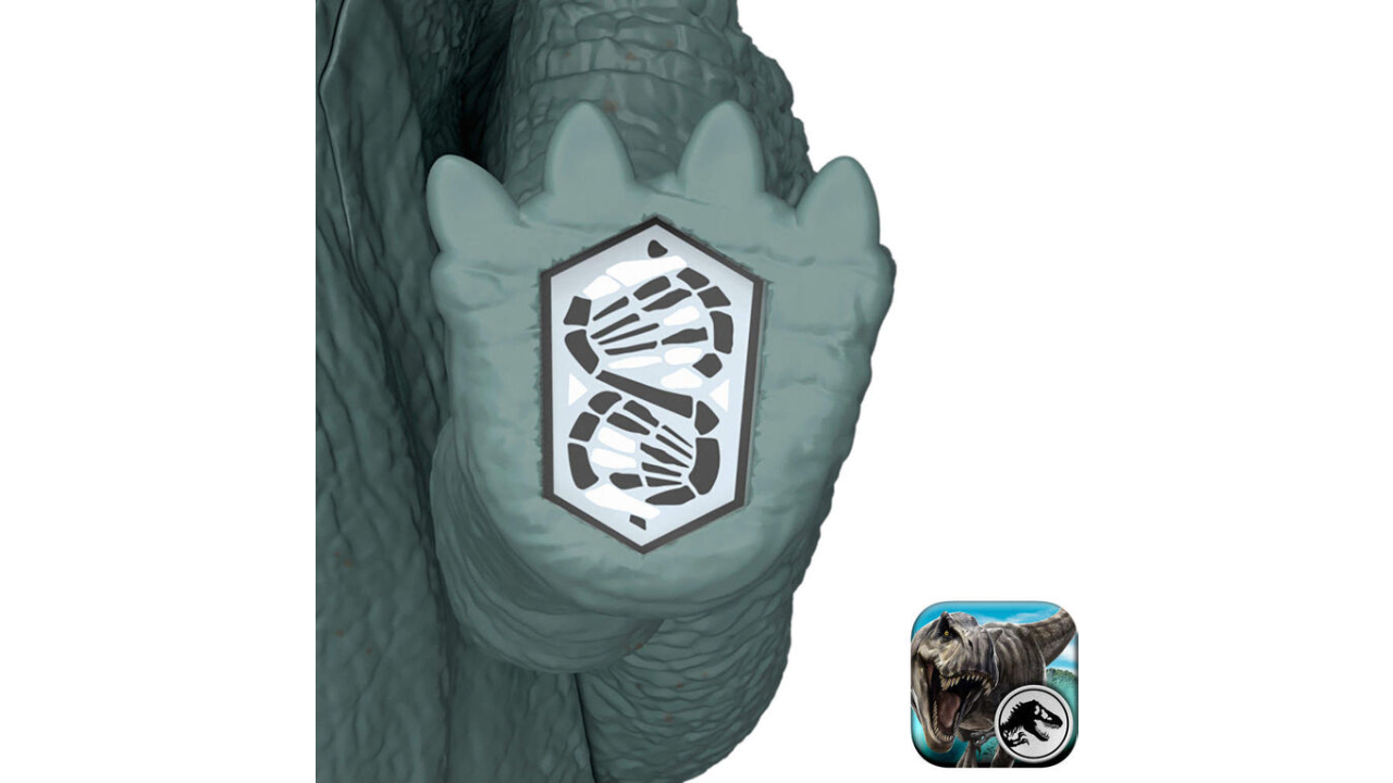 Scanează codul pe care îl vei vedea pe laba dinozaurului în aplicația gratuită Jurassic World Play cu un dispozitiv inteligent compatibil (nu este inclus) pentru a debloca activități de realitate augmentată și a crea o colecție digitală de dinozauri