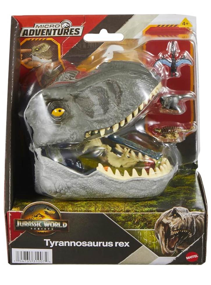 Adu emoțiile din Jurassic World Rebirth acasă și ia-le cu tine oriunde, cu un set de joacă Tyrannosaurus Rex Micro Adventure!