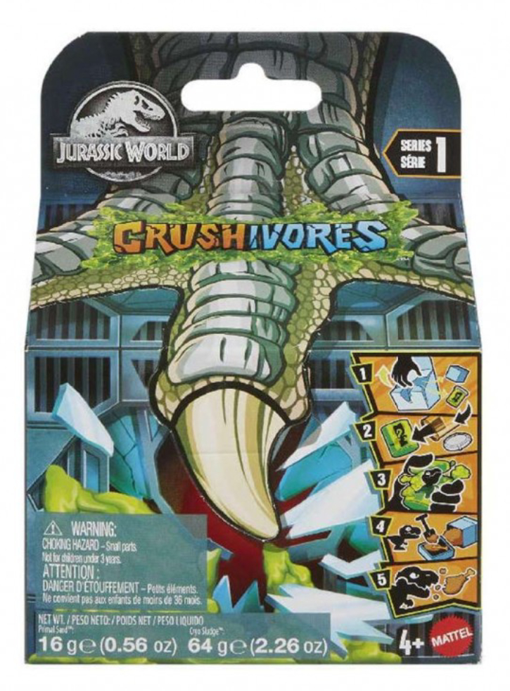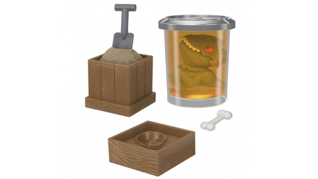 Ambalajul exterior va fi desfăcut pentru a descoperi o „eprubetă” de gel Cryo Sludge care poate fi îndepărtată și zdrobită cu mâna pentru a descoperi o figurină de dinozaur.