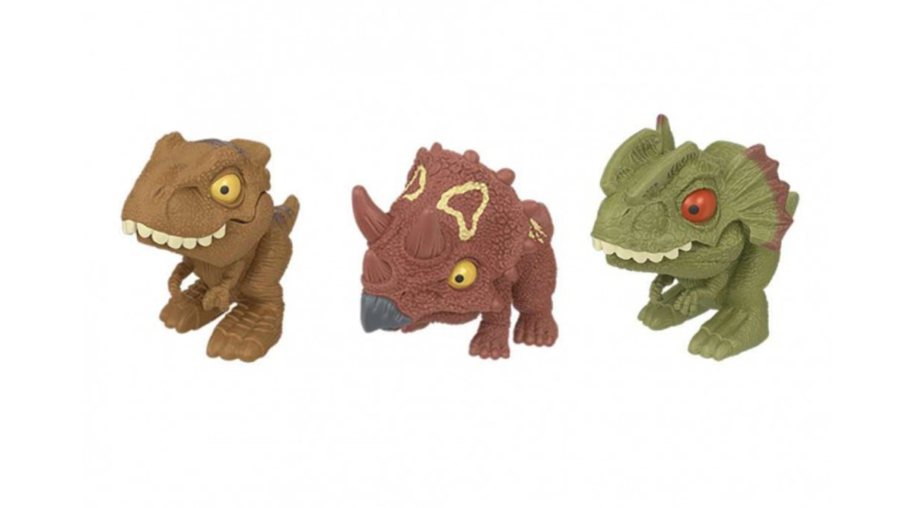 Figurinele dinozaur includ specii favorite precum T. rex, Dilophosaurus și Triceratops. Fanii vor dori să le colecționeze pe toate.