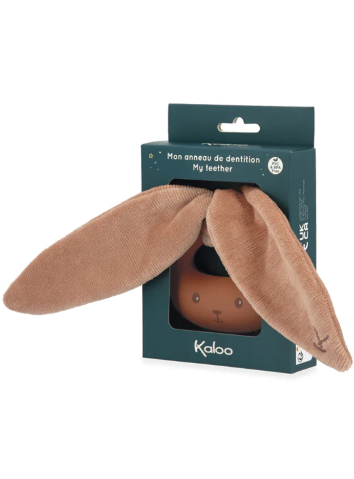 Kaloo Rabbit Teether Terracotta este un produs adorabil și practic, conceput pentru a oferi alinare bebelușilor în perioada de dentiție, combinând funcționalitatea unui inel gingival cu delicatețea unui iepuraș de pluș.